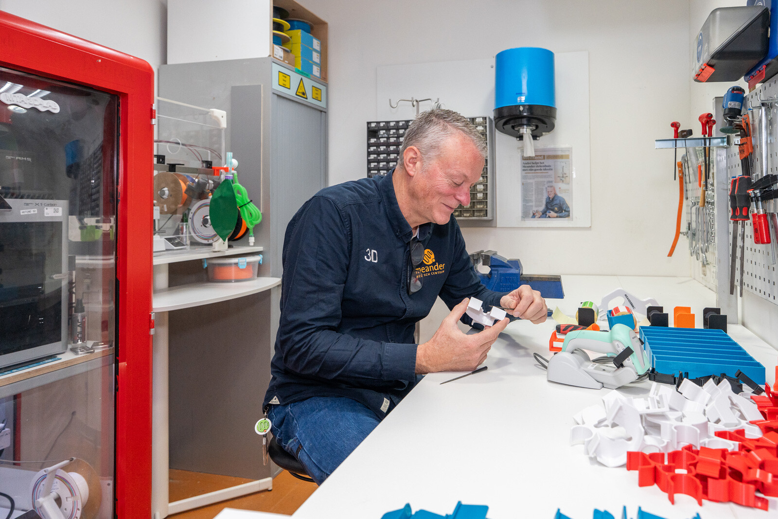 ‘Ik werk 32 jaar bij Meander en ik ben eigenlijk altijd al bezig geweest om oplossingen te verzinnen voor problemen op de afdeling. Jaren geleden werkte ik met rvs en andere materialen, maar als ik kunststof nodig had, liep ik een beetje vast. Het bestaande materiaal voorzag niet altijd in wat ik voor ogen had. Toen ben ik thuis een beetje gaan experimenteren met 3D-printen.