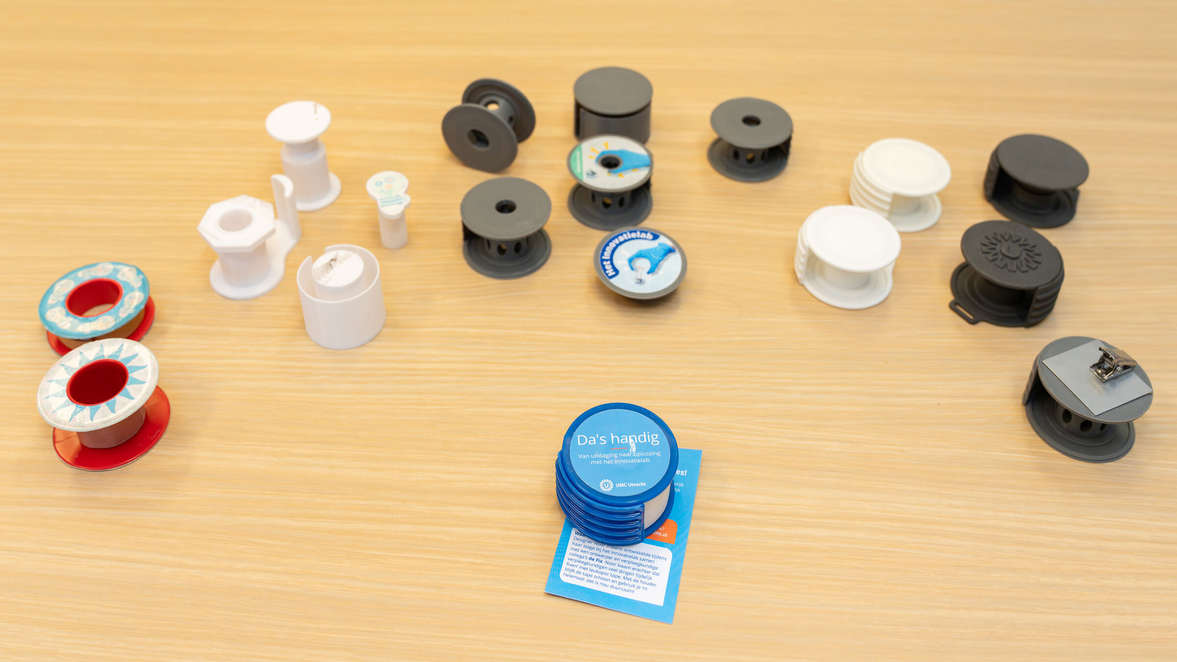 Een mooi voorbeeld is de Fix. Verpleegkundigen gebruiken vaak een rolletje tape om allerhande problemen op te lossen. Het heeft een intended use om verband te fixeren, maar het wordt dus voor veel meer gebruikt. De tape wordt vaak in de zak van het uniform bewaard. Maar dat maakt de zijkanten van een aangebroken rolletje smoezelig en dan mag de tape niet meer bij een patiënt gebruikt worden. De innovatieverpleegkundigen en de Medische Techniek hebben samen naar het probleem gekeken. De oplossing was een plastic houdertje waar de tape in kan en die je aan je pak kan hangen. De Fix.