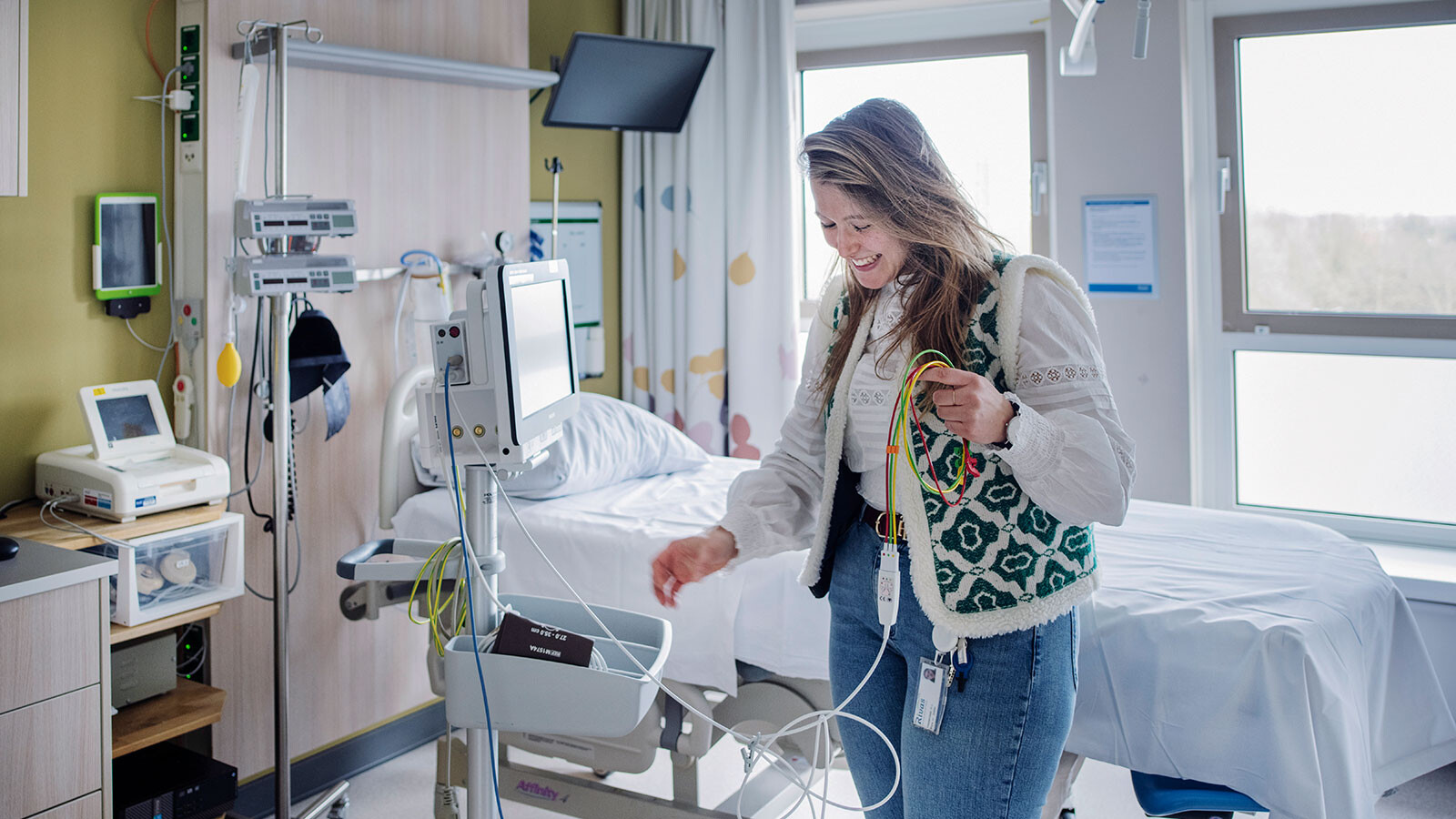 Aan het woord is ditmaal Heike Westerbeek (27) medisch instrumentatietechnicus bij het Beatrixziekenhuis in Gorinchem, onderdeel van Rivas Zorggroep. Tijdens corona kreeg het ziekenhuis extra bewakingsmonitoren geleverd door VWS. Nu de pandemie voorbij is, krijgt de apparatuur in huis een andere plek. ‘Bij Rivas Zorggroep wordt het principe van de juiste zorg op de juiste plek breed toegepast, en wij dragen eraan bij door de apparatuur slim in te zetten.’