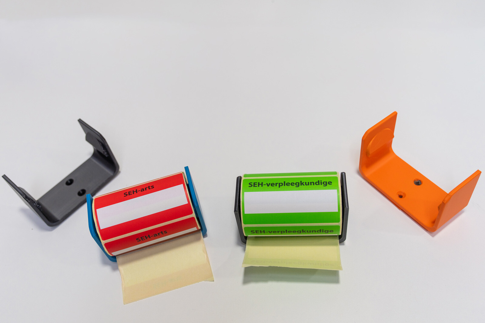 Overigens worden er nog wel eens toepassingen van mij uit het ziekenhuis meegenomen. Door bezoekers of zorgmedewerkers. Dan duikt mijn print ineens op in een ander ziekenhuis en krijg ik van een collega daar de vraag of ik er een paar voor hen kan printen omdat hun beddenframe een andere maat heeft. Dat doe ik natuurlijk niet, maar ik leg wel uit hoe ze het kunnen maken. En ik zet inmiddels onze naam op de wat grotere prints, zoals de houder voor het steriel werken aan het bed.’